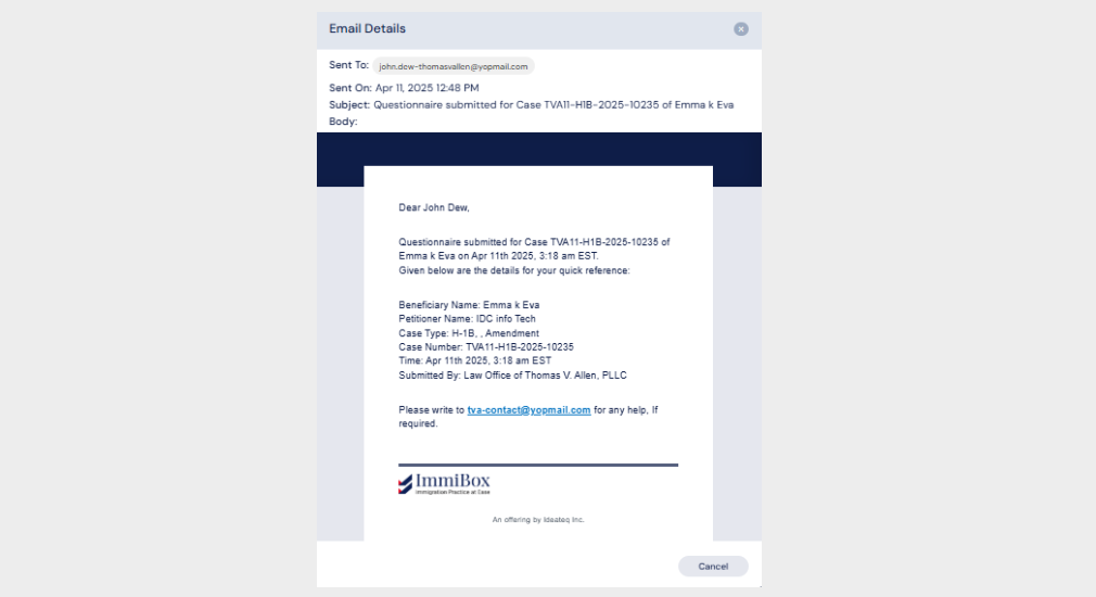By default, the Sent Email report will display all emails sent concerning the cases.
